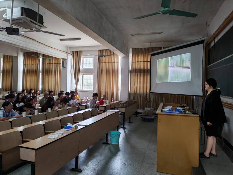 6月17日举行的瓷文化活动校内部分分成了解青瓷和体验青瓷两个阶段。均由青瓷学院的教师负责组织实施。活动的室内理论环节被王卉老师设计为一场穿越时空的文化之旅。在她的生动讲述下,学员们沿着“青瓷史话”的长廊,从釉色初现的远古,漫步至釉色如玉的宋瓷巅峰,系统了解了青瓷的工艺演变与审美流变。