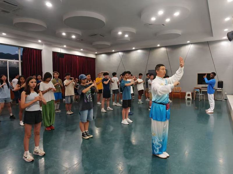 尽管只有两个晚间的短暂学习,董教练由浅入深的教学已让营员们掌握了数个基础武术动作,激发了大家浓厚的兴趣。活动中,我校武术专业学生的精彩表演更将现场气氛推向高潮,行云流水的动作引来阵阵掌声,令营员们赞叹不已。许多学员意犹未尽,纷纷围着教练希望能“再多学一些”,现场学习热情高涨,中华武术的种子已在跨文化交流的土壤中悄然播下。